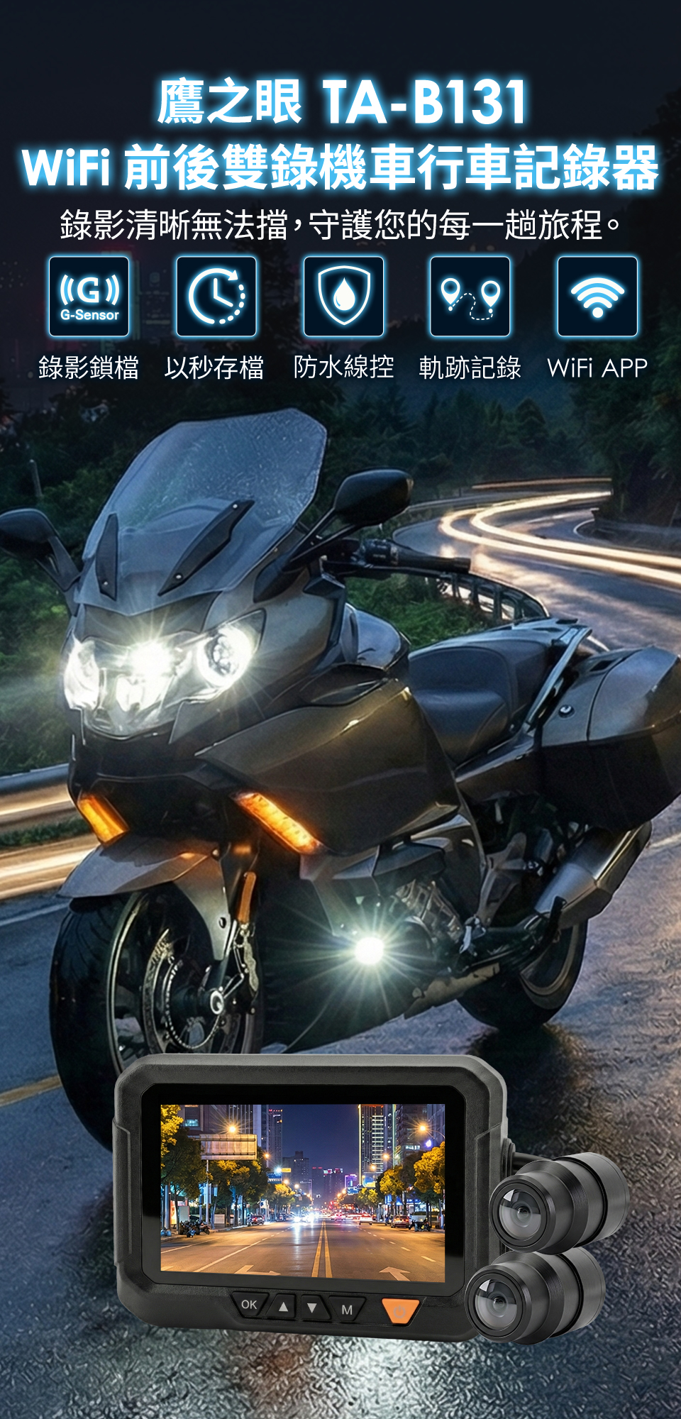▼鷹之眼WiFi前後機車DVR